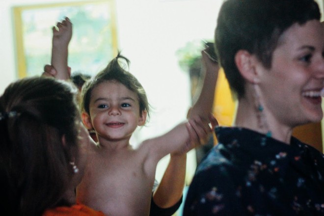 Today we celebrated daddy’s upcoming birthday (he’s going to be 30!) at grandma’s house. He shares his birthday week with both your uncles and your grandpa. It’s an annual traditional to celebrate all the boys with lasagna, strawberry cheesecake, and all the family. At some point you decided to take off your shirt because celebrating is better in the nude.  Always.