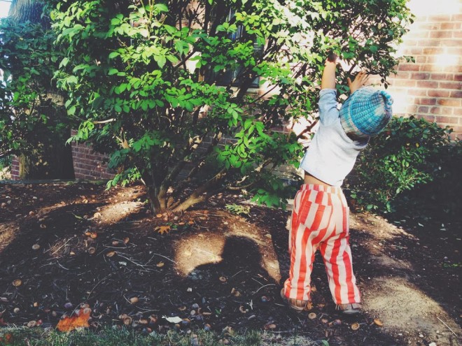 My toddler is 23 months today. TWENTY THREE MONTHS! Holy where did the time go? I’m in complete denial that this kid (who shockingly is beginning to look like a teenager in some photos. is it just me?) is going to be two next month. Lucas is vivacious, spunky, smart as a whip, and loving. Man is he loving. This week he has been willingly giving mami and papi some pretty delicious on the mouth kisses. Toddler slobber is the best you guys. He says “peeese” (please) , “dank uuu” (thank you), and can count to five (although he is partial to two and five). He’s all boy and is a great collector of all the things. In particular acorns. Please see the photographic evidence above of the acorn/Lucas cheek affection. Swoon.