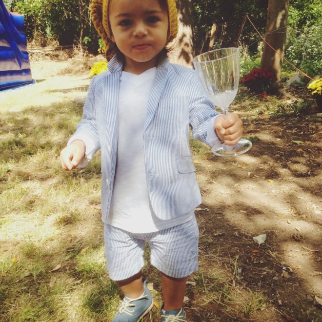 On a perfect Fall – esque Sunday, we headed out to the burbs for a backyard birthday party. Lucas’s little pal was turning one and we dressed him up for the occasion. How adorable is a toddler in a suit? A seersucker suit, you guys! #mamaswoon