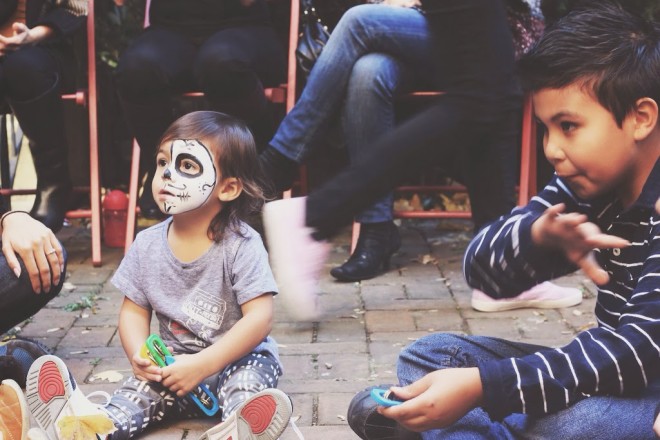 Last Saturday we visited a local bookstore in Spanish Harlem, La Casa Azul. They had a special family day for the 2nd day of Dia de Los Muertos. There were craft activities for the children, calavera face painting, and a musical performance by ¡Uno, Dos, Tres con Andrés!. It was a perfect day of celebrating filled with lots of love. Make sure to head over to Karla’s blog for more besos de mami!