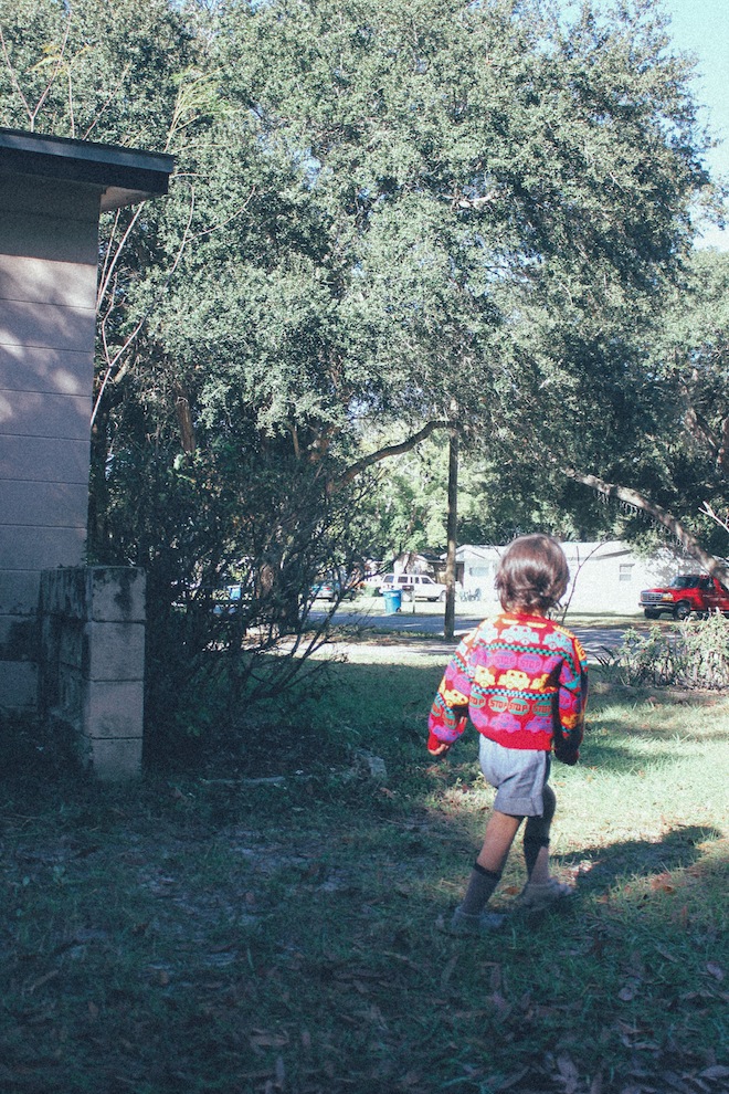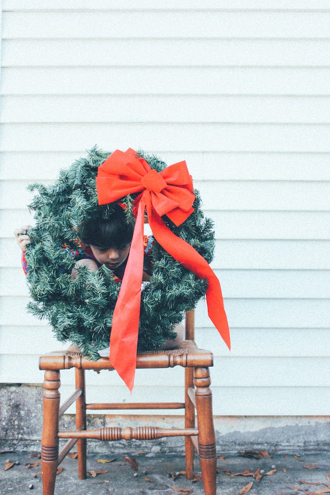 We’re in Florida! Again! Can you tell we really love it here? We arrived Tuesday morning and were greeted by a house decked out in Christmas decor. My aunties know how to do the holidays right! Lucas is loving every bow, wreath, and blinking light. It has been such a pleasure relaxing on the back deck with just a light sweater and taking in all the sunshine. Sorry NYC. We all needed a break from the cold. Oh. Those wreath photos above? I woke up with this idea that I just knew would be perfect. Lucas poking his head out of a giant wreath? Adorable! Wrong. Total fail (especially the part where he flung the wreath across the grass..) but either way the photos still make me smile. We still have another week in the sunshine. Another week of thrifting, relaxing, more relaxing, and family time. The best. Happy Holidays from Clearwater!
