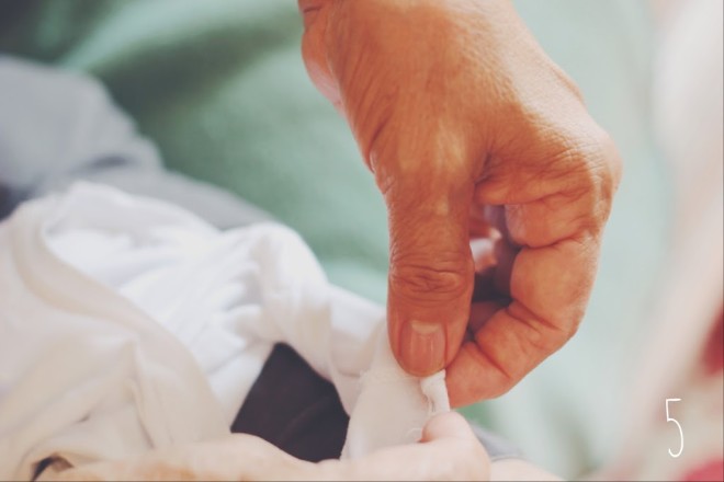Time to grab your needle and thread. Turn the shirt inside out and slightly fold the unfinished hem as you go along. Sew using small stitches.