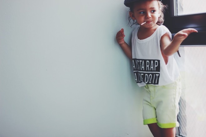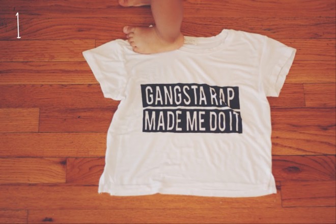 I purchased this shirt about a month ago but after careful consideration I decided it looked much cuter on Lucas. It’s a woman’s crop top but in the world of children’s fashion anything goes. I decided to turn it into a tank and had my mama help with her sewing skills.