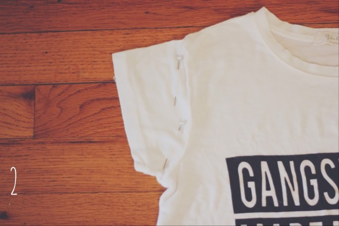 Pin the seams on the arms of the shirt to hold them in place and make sure they are aligned.