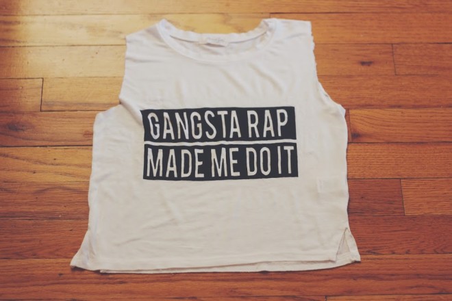 That’s it! Since my shirt was originally a crop top I left the bottom as is. If you want to shorten your tank, use steps 3-5 to create the length you want. This is in no way a “perfect” tank but I think it looks pretty sweet. Plus it’s incredibly quick and easy. This would be a great project for a fun vintage find or even one of your old school college shirts. Happy sewing!