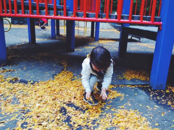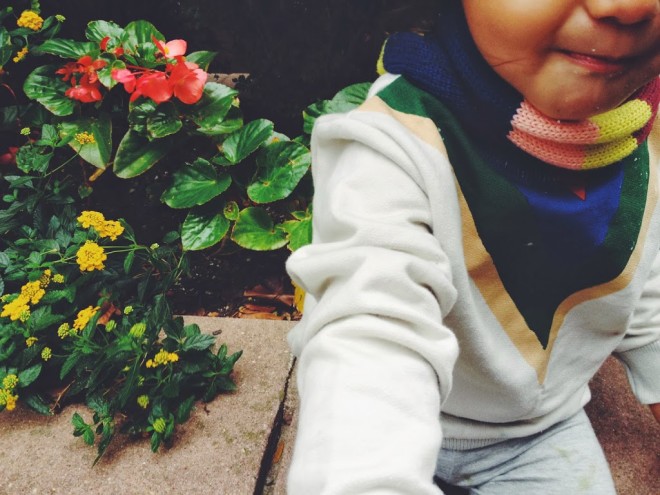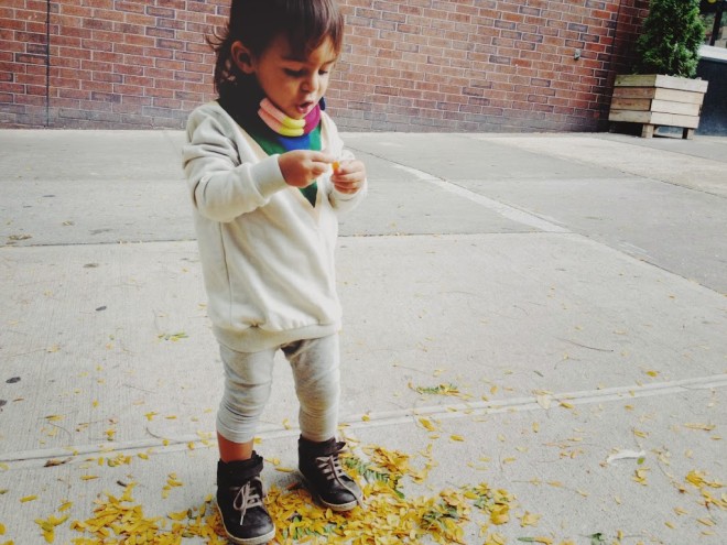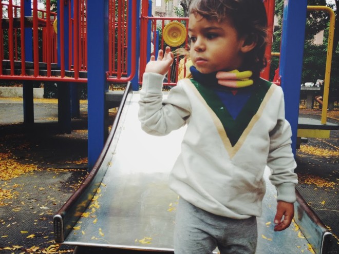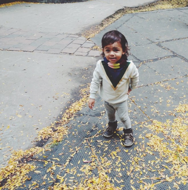 I check the weather every night before heading to bed. It gives me a sense of the day to come and let’s me plan mama and Lucas adventures accordingly. The forecast was rain. Lots of it. When we woke up this morning Lucas drank his milk, had a bowl of strawberries, and we ran out the door. I wanted to make sure we spent a few hours outside just in case the weather man was right (would you believe it..he’s often wrong!) and we would be trapped inside all afternoon. We made our way to two different parks and leisurely walked around the hood, making sure to step on all of the golden leaves sprinkled along the pavement. We stayed out until I felt a rainy mist and we scurried home for nap time. I left the windows open and I don’t know if it was the crisp breeze, but my boy snoozed for 3 hours. Mama win! When my prince arose we played at a neighbors house until it was time to cook dinner – chicken parmesan and fresh corn.