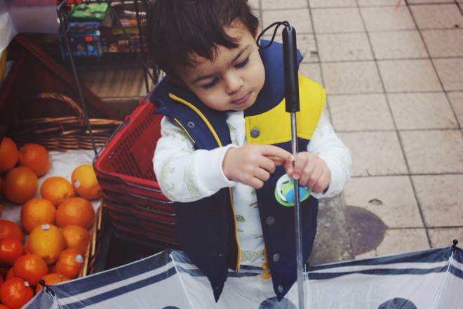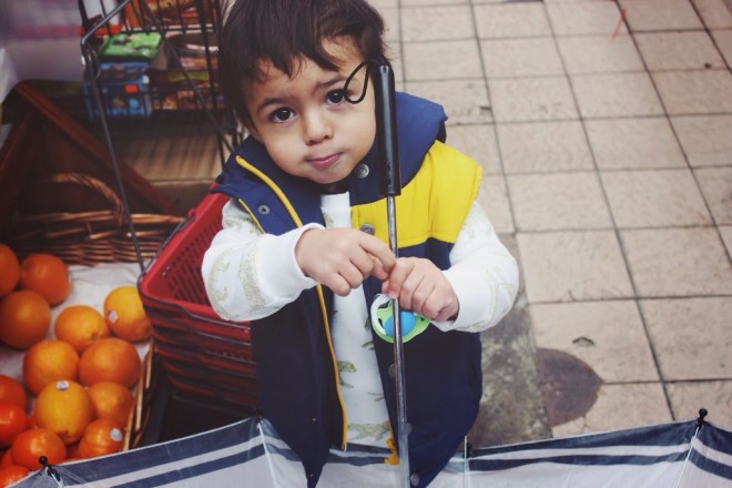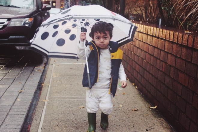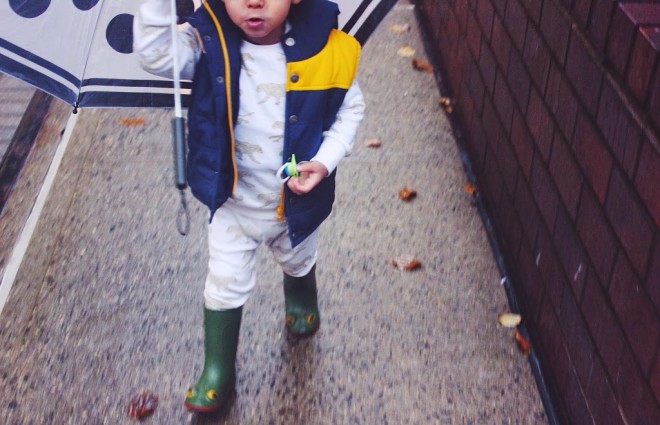 A rainy walk was in order for this duo (Lucas loves the rain..well, holding his umbrella ;). Off we went to visit my girlfriend who lives in the neighborhood for our first Shabbat dinner! We stopped at the local bodega to pick out flowers as we wanted to be gracious guests. Lucas actually made the final choice and selected gorgeous peonies. Our host loved them – good choice, baby! We had a fabulous dinner and Lucas received quite a few compliments on his adorable, comfy attire. I think I might be sporting the sweat suit look this weekend. Are toddlers the only ones who can get away with this look? I think if I look as cute as Lucas I’ll take my chances.