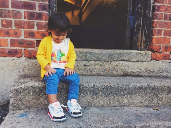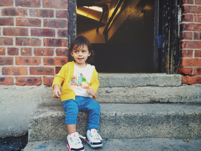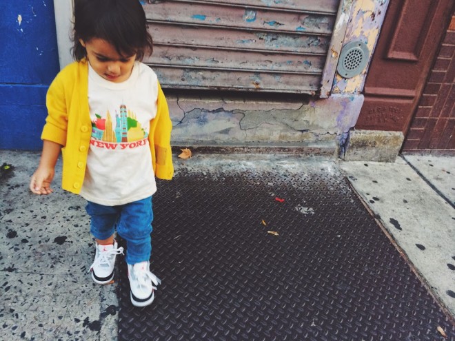 I recently discovered All Good Living Kids and became an instant fan. Made in the USA under ethical labor practices, their collection features awesome prints created by artists and graphic designers. They also have an organic line which uses low impact dyes and eco-concious screen printing. The designs are fun, modern, and just perfect for my mini city dweller. How awesome is this New York City tee? You can check out the entire collection and shop here                        cardigan from h&m kids (similar here) | shirt c/o agl kids | jeans from zara kids | air jordan sneakers