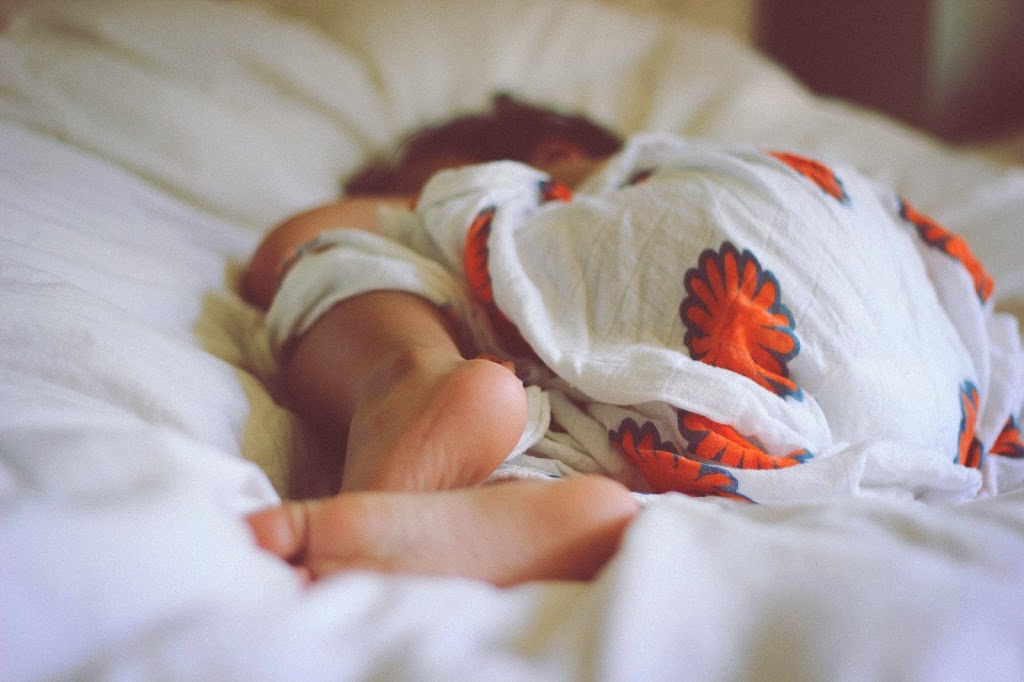 Floral rompers that are on heavy, heavy rotation this summer (thrifted at the Good Will).Sleeping toddlers wrapped up in their old swaddling blanket.