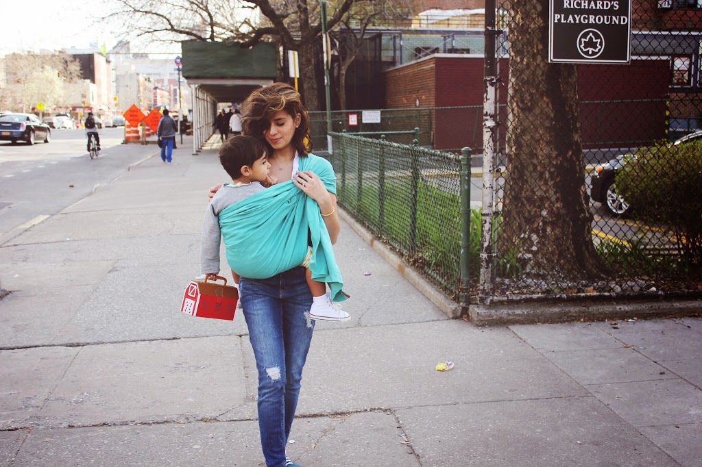 This is my final post for volume IV of the sling diaries: everything shines. You can follow along with my fellow sakura loves here. I am wearing the simple linen baby sling in Caribbean. I want to thank Sakura Bloom for allowing to be a part of this amazing journey with so many incredible mothers and fathers. It has been a privilege and an honor. Wearing Lucas has been such an important, vital part of my life for the past two years and I will treasure the memories forever. Lucas,Saturday afternoon we walked together as a family to a carnival in the neighborhood. I saw it being set up last week. The workers assembling the rides, flashing lights, and polyester teddy bears being hung up in colorful rows. I spent the last few days talking your dads ear off about how I couldn’t wait to take you and oh my goodness – the car carrousel! You love cars buddy and just the thought of watching your face light up as you got to choose which specific car you wanted to ride in (you are quite opinionated), well, it made me smile from ear to ear. You see, I live for these adventures with you. The way your eyes grow wide with excitement and your mouth slowly forms an O. The way only a two year old can shout “wowwwww”. Pure Joy. When I pick you up from nursery school, I rush to collect your paintings from the day, throw your hat on, and scurry out the door so we can slowly walk home. What should be a 10 minute walk usually turns into 20, sometimes 30 minutes, and more often than not it is the highlight of my day. We stop to look at the window fronts – the best ones are the fish market and the model airplane shop. Sometimes we find a stoop to sit on and chat about your day while you eat a bag of platano chips. My little one, every day is an adventure with you. When I take the time to view the world through your eyes, everything seems that much more magical, beautiful, innocent, and exciting. Thank you for teaching your mami this lesson. I know there are times when I seem rushed. Dinner has to be made, there are emails sitting in my inbox, the rugs are covered in dog hair and I need to vacuum for what seems like the millionth time that week. Thank you for being so forgiving. Thank you for shoving a ninja turtle in my face and telling me to “sit, mama!”. Because emails can wait. Donatello and Michaelangelo are where it’s at. Playing and listening to you is an adventure in itself. I’m constantly amazed by your growth and your love of learning. Two years old and you already seem to have a grasp on what’s important in life. Cheers to a lifetime of adventures together. Te amo, MamiSAKURA BLOOM SLING DIARIES | ADVENTURE