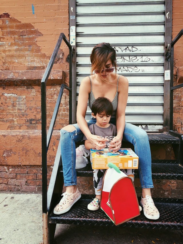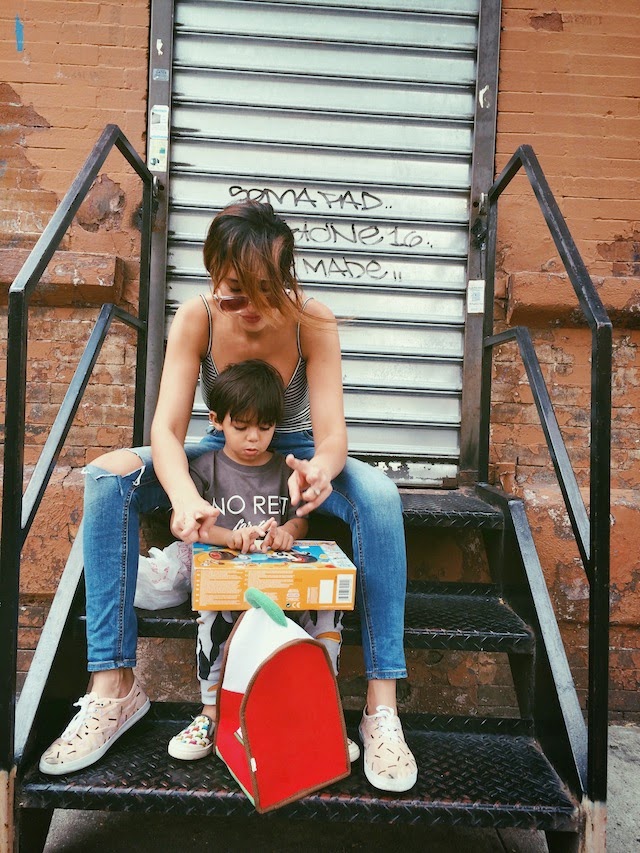 The weekends are sort of my favorite. Especially Saturdays. We usually wake up, chug some coffee, and head out wherever the NYC wind takes us. On this particular Saturday we headed to Harlem and wound up at a local BBQ joint for ribs and all the trimmings. Also, leftovers for 2 days? Yes, please! I adore these shots Ivan took during our stroll. Almost 3 years young and Lucas still loves his mami to carry him. My back might be aching but my heart is so very full.