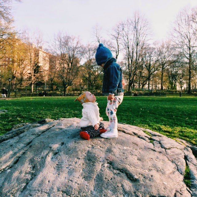 Last week we had a bit of a cold front. A major, unwanted departure from the sunny warm weekend that had just passed. It put me in a bit of a funk to say the least. I contemplated chucking all my winter jackets and wearing nothing but sandals and tanks out of spite. But then I’d wake up sick and bla bla bla. So there we were, bundling up in scarves and hats..yet again. The weather man must have felt the bad juju vibes I was sending him and we had a little break in the middle of the week. Lucas and I met new friends for coffee and a park date and it was just what we needed. We still needed a few layers but I can deal with a denim jacket. It’s the faux-fur lined coats that have me all in a tizzy. Either way, Spring we can feel you. We want you to stay. We kinda, really love you. Thanks in advance for the warm, sunny days, play dates with friends, and iced coffee breaks. Also, I think I’m looking pretty good with two kiddies. Ivan, I hope you’re reading this. I kid. I kid. Sort of. Thanks Mary for amping my baby fever to turbo. Cheers, Spring!