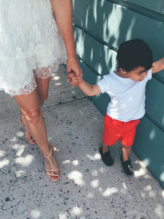 Over the weekend we dolled ourselves up and headed to my God sister’s baby shower. We had an amazing time celebrating and Lucas was extra well behaved. He ate what I served him, said please and thank you, and listened to mamas instructions. He was the perfect gentleman! It didn’t hurt that he looked extra adorable in his little twonager ensemble (there’s something about a white tee that gets me every time).