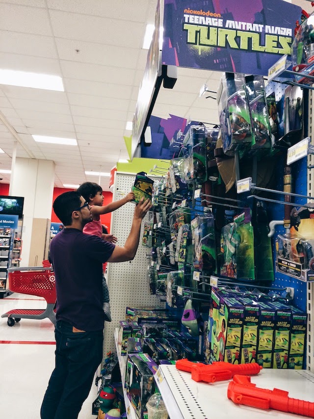 About once a month we like to mosey uptown to our closest Target. Not because we need anything in particular (good grief walking into that store is a TRAP!) but simply because we enjoy the walk. This trip in particular had purpose – a new Ninja Turtle for the boy. Because you can never have enough turtles. We stopped for a cherry icee and Lucas was nice enough to share with mama (although none was spared for daddy). When we finally made it to Target Lucas couldn’t decide which turtle he wanted. These are hard decisions people! After about half hour of serious deliberation he settled on a turtle lunch box and puzzle. Wins.